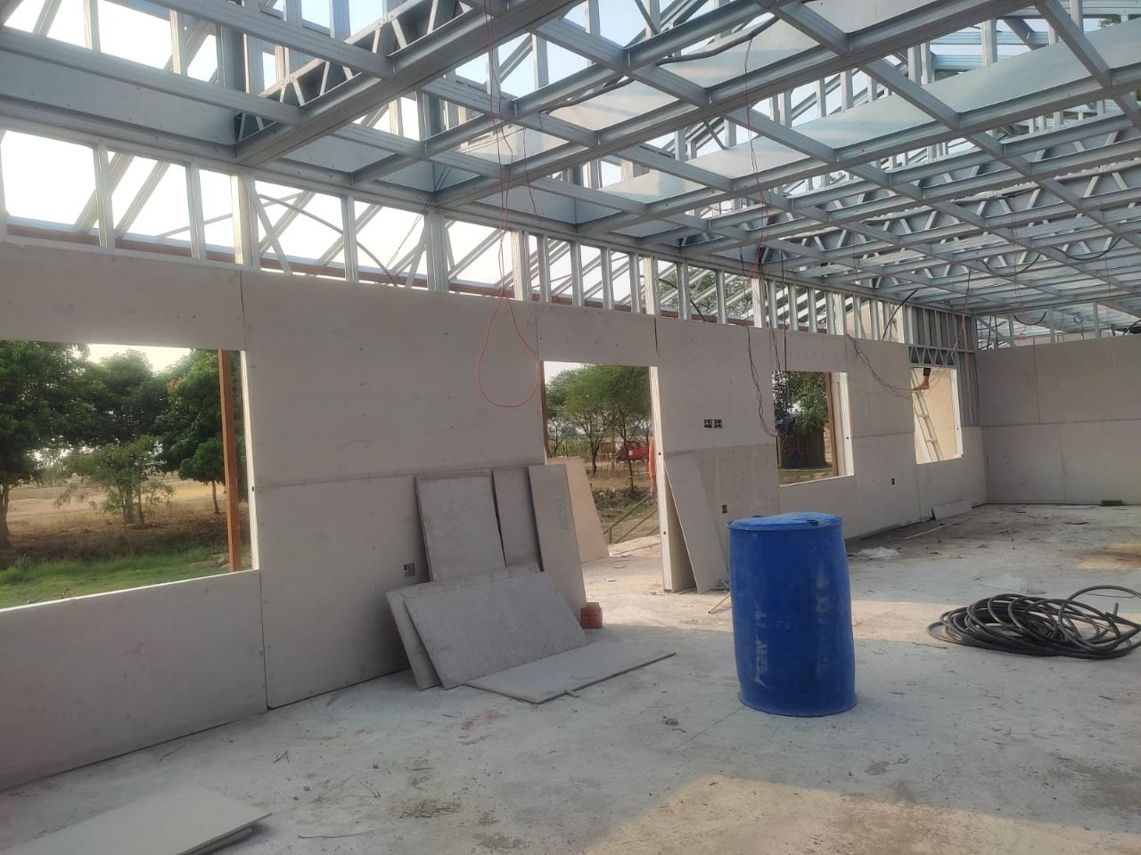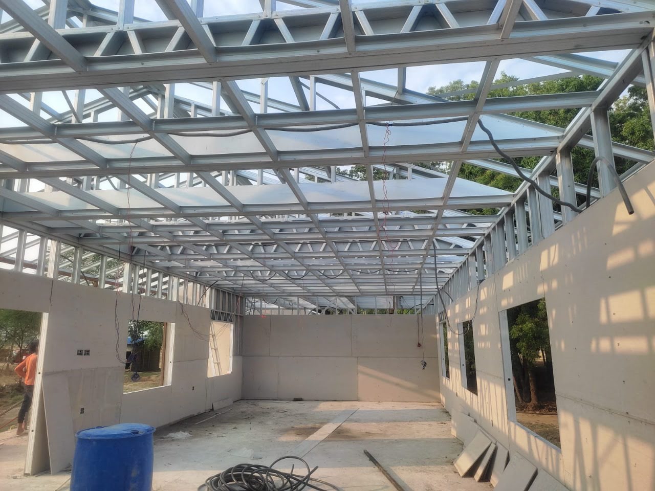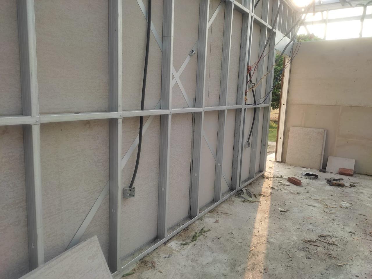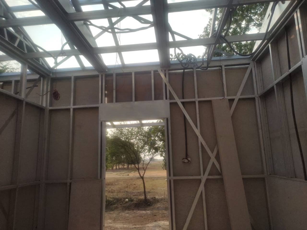 This house in APF Nepal, Nepalgunj is constructed using a Panchakanya metal system with an infill wall system. It uses 10 mm cement boards on both sides, providing strength, durability, and a smooth finish. The structure is lightweight, strong, and suitable for safe and efficient modern living.