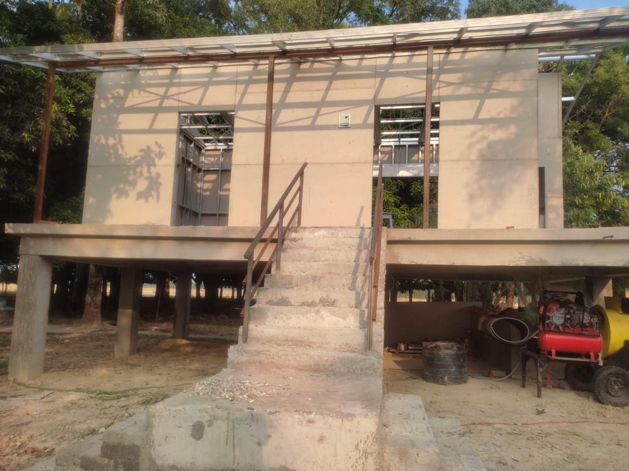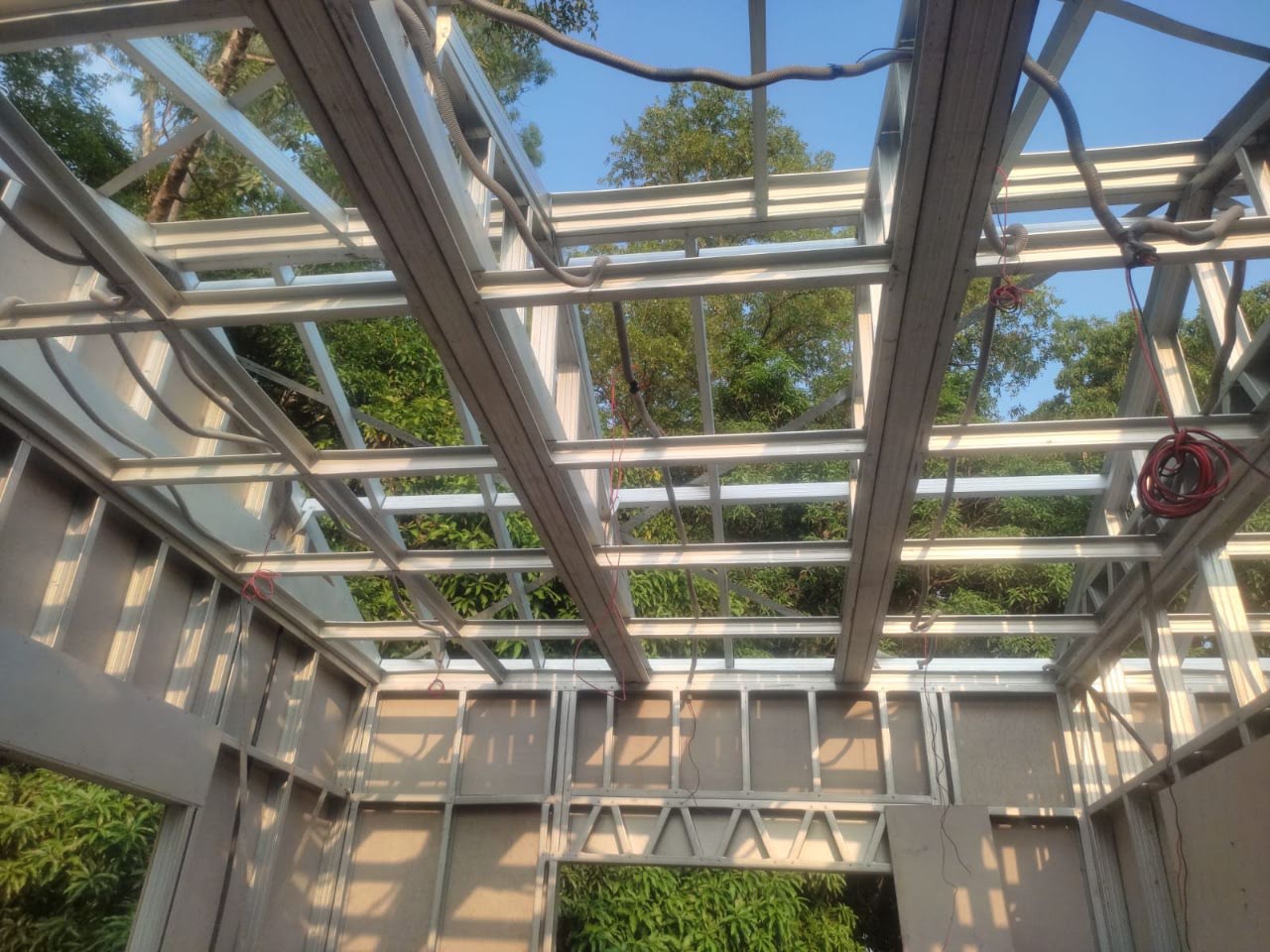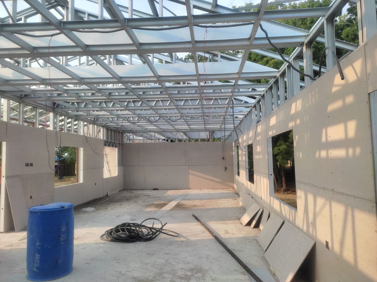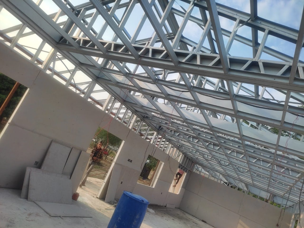 This house in APF Nepal, Nepalgunj is constructed using a Panchakanya metal system with an infill wall system. It uses 10 mm cement boards on both sides, providing strength, durability, and a smooth finish. The structure is lightweight, strong, and suitable for safe and efficient modern living.